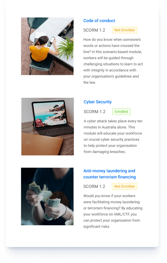Keep your courses safe and your data private on our AWS-powered and ISO 27001 certified platform. Learn more